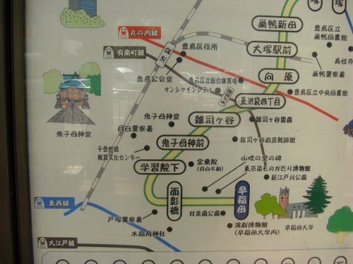 路線図も既にシールが剥がされ、副都心線の文字や都電雑司ヶ谷の駅名が見えていました。