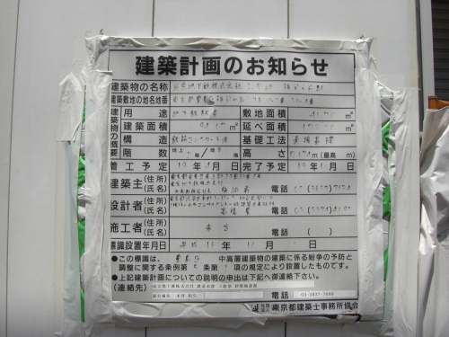 出口近くにあった建築計画のお知らせ
