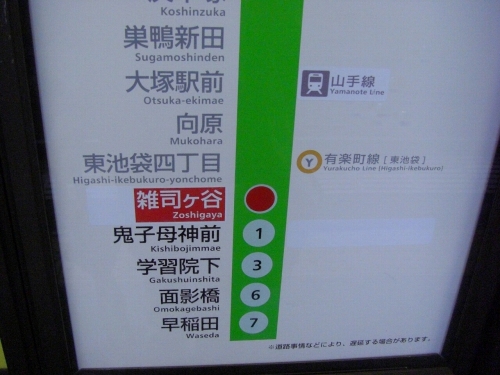 鬼子母神前駅・雑司ヶ谷の所にシールが貼ってあります。