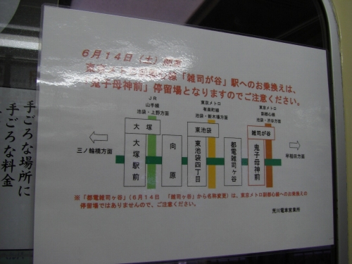 なお、副都心線の雑司ヶ谷駅へは都電の鬼子母神前駅から乗り換えです。