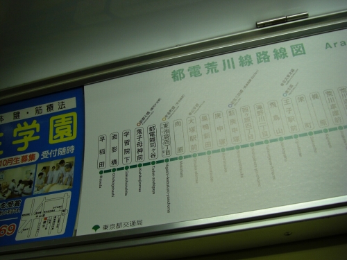 都電早稲田駅にあった路線図。まだ副都心線の表記はありません。