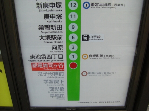 副都心線は雑司「が」谷ですが、都電は雑司「ヶ」谷です。ややこしい……